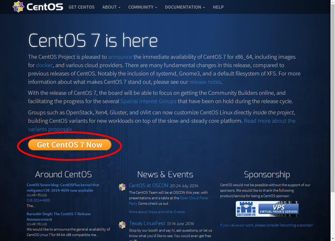 連上了 http://www.centos.org/ 之後,映入眼簾的就是大大的「Get CentOS 7 Now」按鈕。
